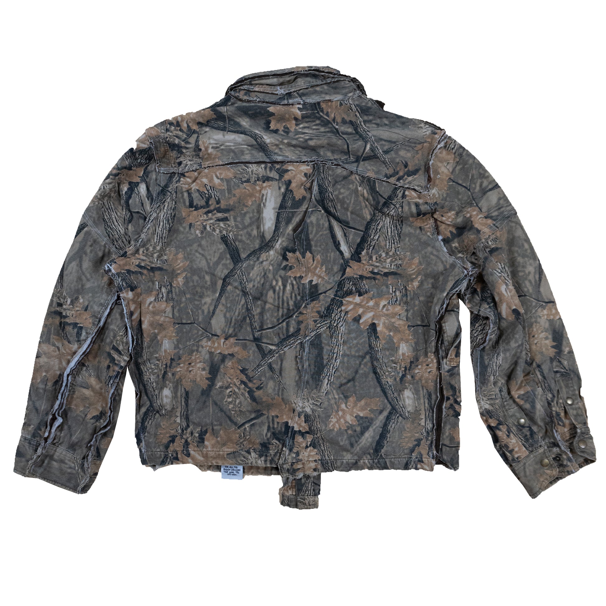 Silent. Tactical. Raw. The Deep Woods Decoy Jacket disappears into the trees but stands out in the streets. Crafted from vintage hunting camo gear, it’s reworked for maximum edge with exposed seams and unexpected tailoring.