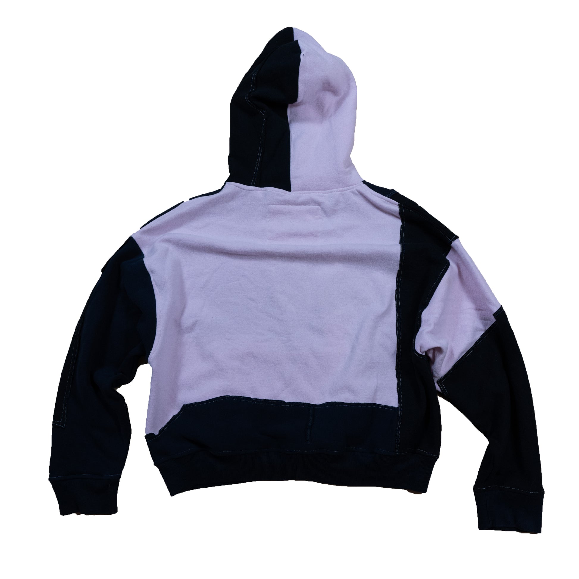 Elevate your streetwear with this bold and moody patchwork hoodie. Featuring a rich mix of midnight black and soft lilac tones, this piece brings subtle contrast and handcrafted detail to the forefront. Made entirely from upcycled sweatshirts, it’s sustainable style with an edge.